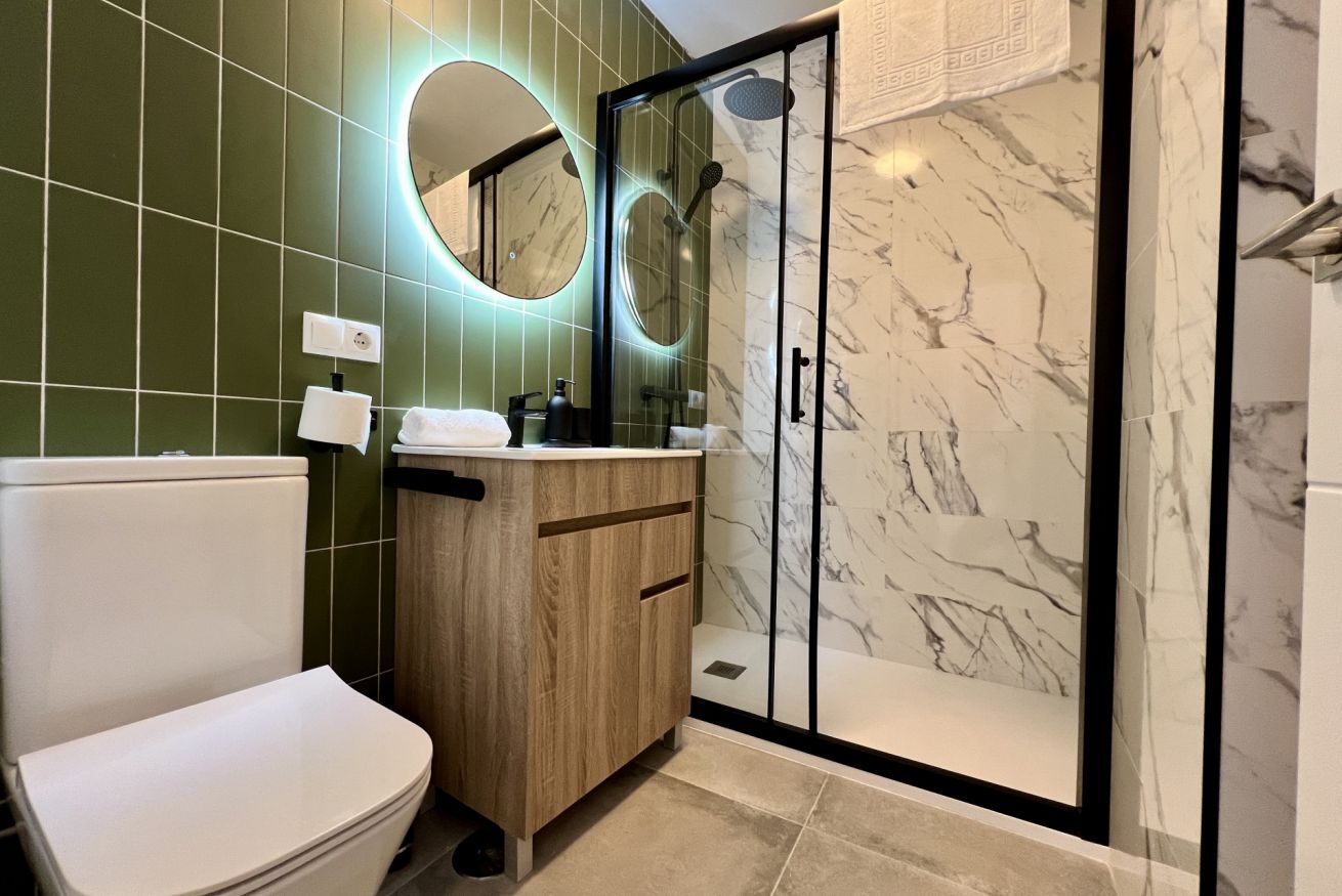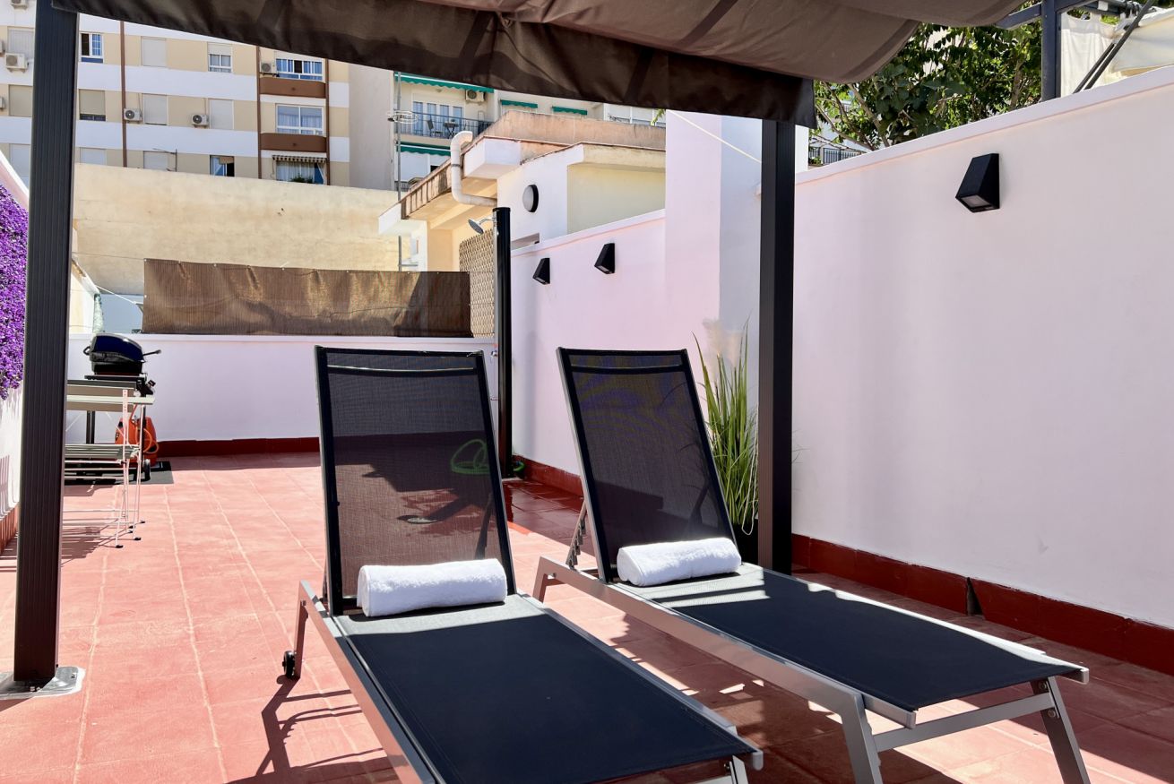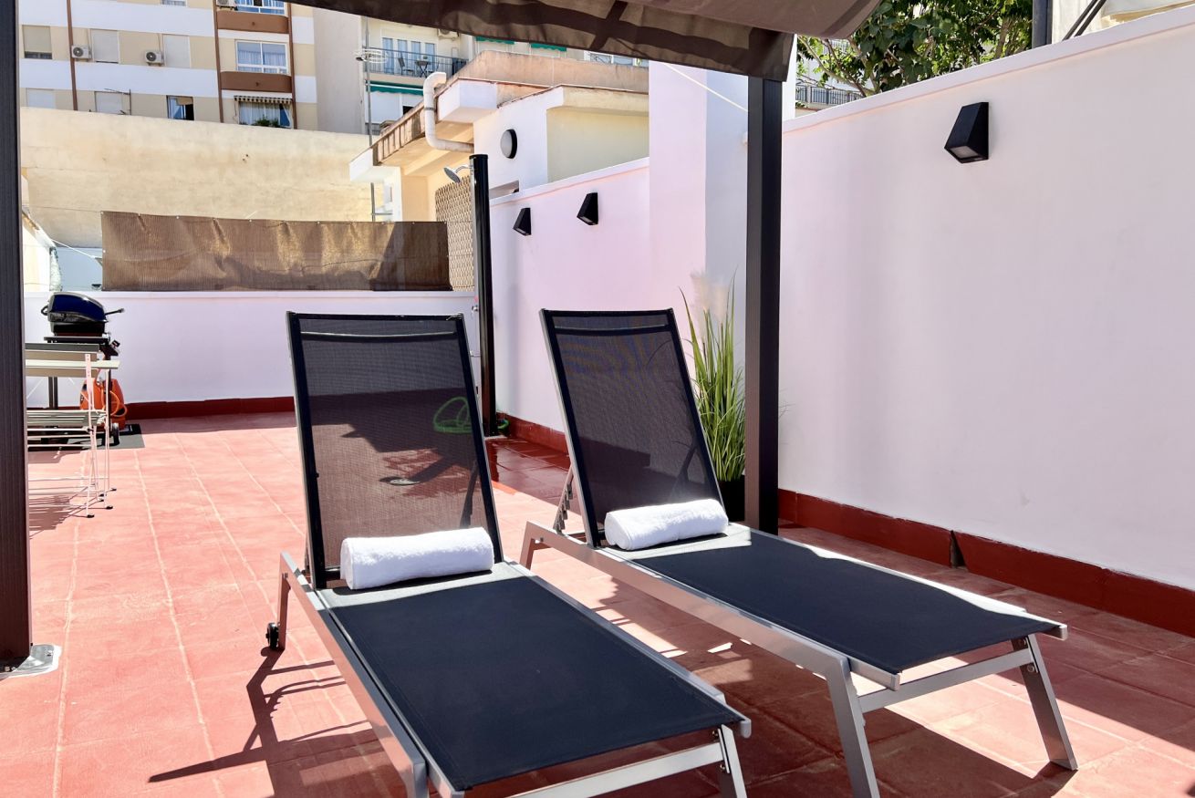 Apartamento con terraza privada y ducha para refrescarte en verano.