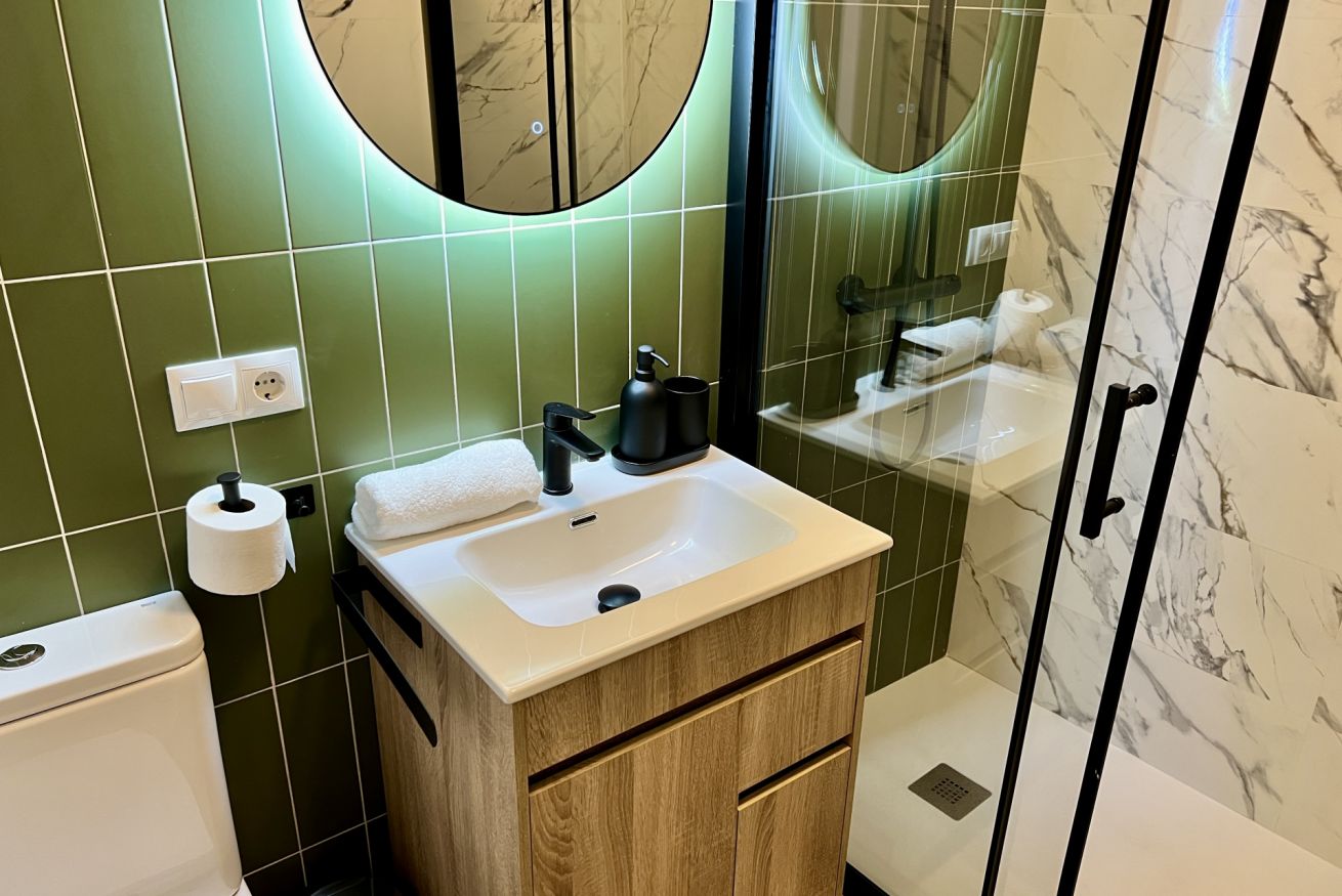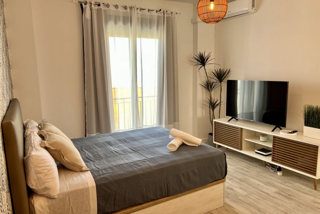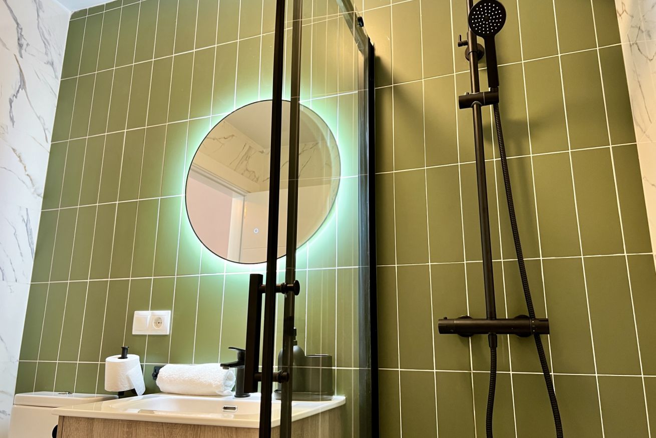 Apartamento con terraza privada y ducha para refrescarte en verano.